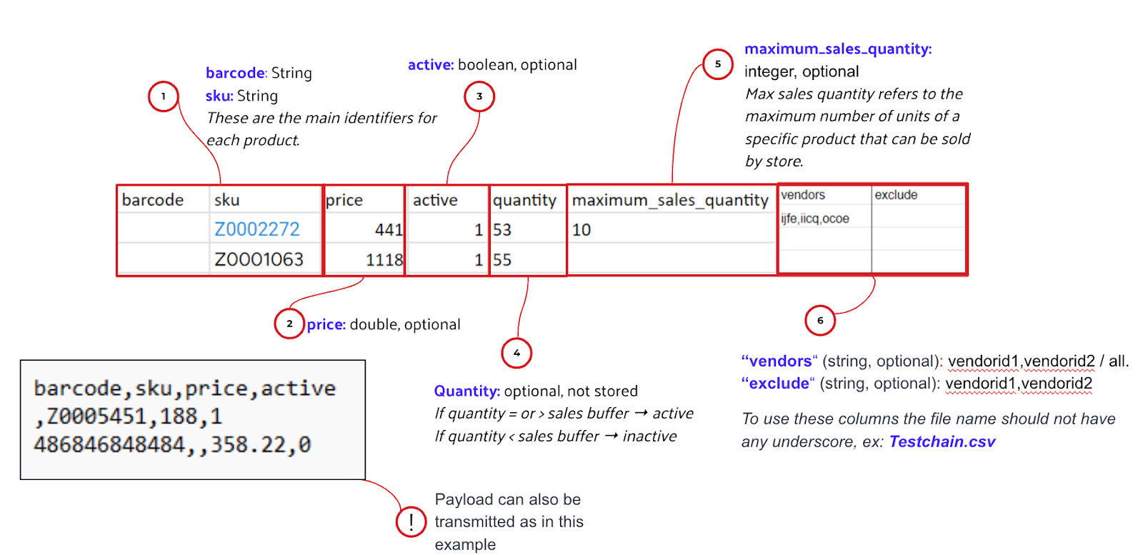 This format is intended to update the assortment for more than one vendor/store in one file.