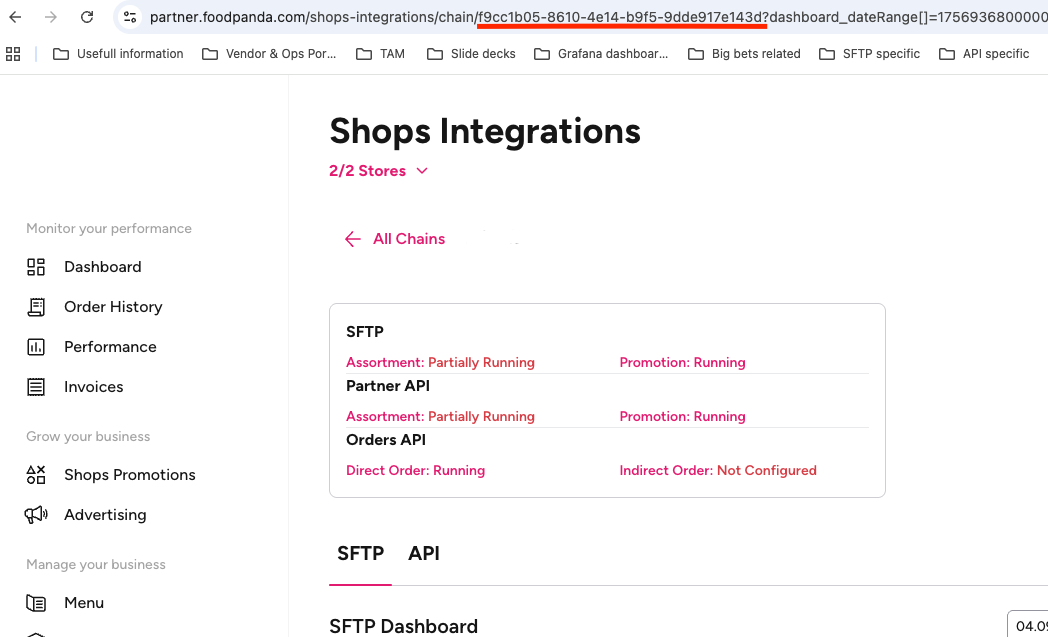 In order to use GET and PUT endpoints you will need your chainID. You can request it from your Account Manager or find it directly in your Shops Integrations plugin in the URL. For example: